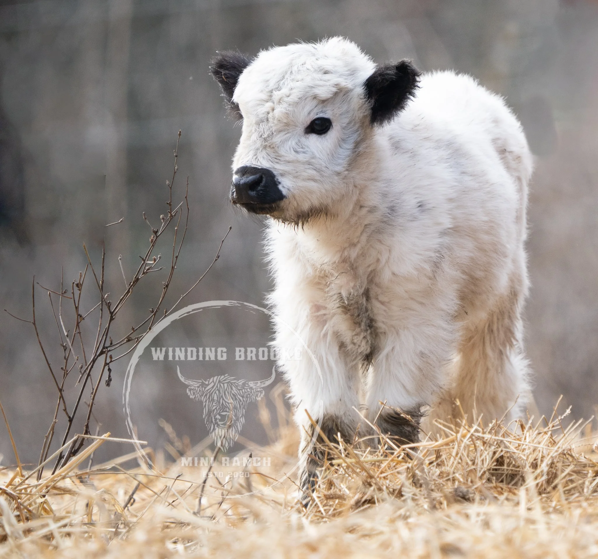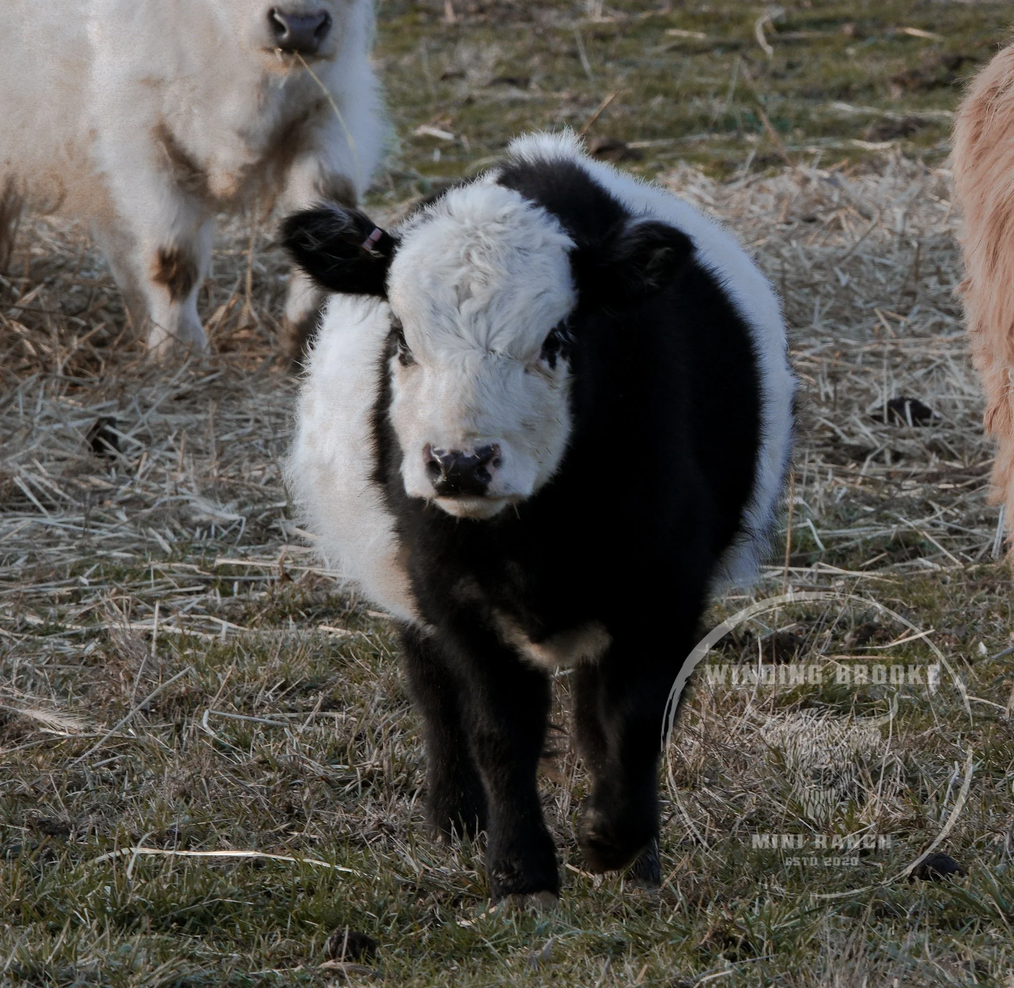 Annie joined us with her pal Ruthie from RCM Miniature Cattle Company this past Fall. We could not be happier with this gal! Annie is a silver highbelt heifer and the first beltie we have added to the ranch! Her markings will stop you in your tracks! Annie will be a part of our highbelt and/or panda program here at Winding Brooke!